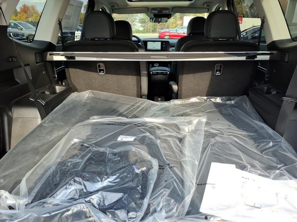 Apple CarPlay & Android Auto, Front dual zone A/C, Heated Front Bucket Seats, Power Liftgate, Power moonroof, SynTex Synthetic Leather Seat Trim, Wheels: 20 x 7.5 Black Finish, 3rd row seats: split-bench, 4-Wheel Disc Brakes, 6 Speakers, ABS brakes, Air Conditioning, AM/FM radio: SiriusXM, Auto High-beam Headlights, Automatic temperature control, Brake assist, Bumpers: body-color, Delay-off headlights, Driver door bin, Driver vanity mirror, Dual front impact airbags, Dual front side impact airbags, Electronic Stability Control, Emergency communication system: 911 Connect, Exterior Parking Camera Rear, Four wheel independent suspension, Front anti-roll bar, Front Center Armrest, Front reading lights, Fully automatic headlights, Heated door mirrors, Illuminated entry, Knee airbag, Leather Shift Knob, Leather steering wheel, Low tire pressure warning, Navigation System, Occupant sensing airbag, Outside temperature display, Overhead airbag, Overhead console, Panic alarm, Passenger door bin, Passenger vanity mirror, Power door mirrors, Power driver seat, Power steering, Power windows, Radio data system, Radio: AM/FM Display Audio System, Rear air conditioning, Rear anti-roll bar, Rear audio controls, Rear reading lights, Rear side impact airbag, Rear window defroster, Rear window wiper, Reclining 3rd row seat, Remote keyless entry, Security system, Speed control, Speed-sensing steering, Split folding rear seat, Spoiler, Steering wheel mounted audio controls, Tachometer, Telescoping steering wheel, Tilt steering wheel, Traction control, Trip computer, Turn signal indicator mirrors, and Variably intermittent wipers.