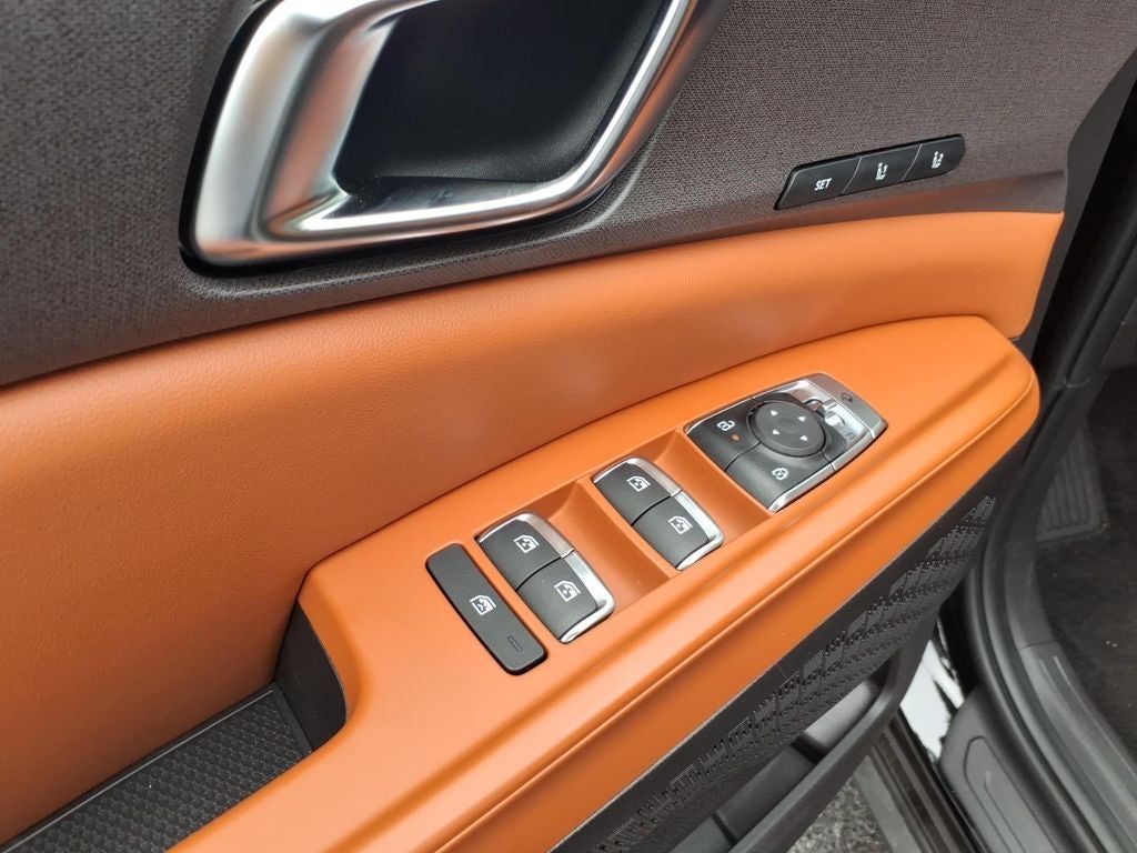 3.51 Axle Ratio, 3rd row seats: split-bench, 4-Wheel Disc Brakes, 8 Speakers, ABS brakes, Air Conditioning, Alloy wheels, AM/FM radio: SiriusXM, Apple CarPlay & Android Auto, Artificial Leather Seat Trim, Auto High-beam Headlights, Automatic temperature control, Brake assist, Bumpers: body-color, Compass, Delay-off headlights, Driver door bin, Driver vanity mirror, Dual front impact airbags, Dual front side impact airbags, Electronic Stability Control, Emergency communication system, Exterior Parking Camera Rear, Four wheel independent suspension, Front anti-roll bar, Front Bucket Seats, Front Center Armrest, Front dual zone A/C, Front reading lights, Fully automatic headlights, Heated door mirrors, Heated Front Bucket Seats, Heated front seats, Illuminated entry, Knee airbag, Leather Shift Knob, Leather steering wheel, Low tire pressure warning, Memory seat, Navigation System, Occupant sensing airbag, Outside temperature display, Overhead airbag, Overhead console, Panic alarm, Passenger door bin, Passenger vanity mirror, Power door mirrors, Power driver seat, Power Liftgate, Power passenger seat, Power steering, Power windows, Radio: AM/FM/HD Audio System, Rear air conditioning, Rear anti-roll bar, Rear reading lights, Rear window defroster, Rear window wiper, Reclining 3rd row seat, Remote keyless entry, Security system, Speed control, Speed-sensing steering, Split folding rear seat, Spoiler, Steering wheel mounted audio controls, Tachometer, Telescoping steering wheel, Tilt steering wheel, Traction control, Trip computer, Turn signal indicator mirrors, Variably intermittent wipers, and Wheels: 7.5J x 19 Machine-Finished Alloy.