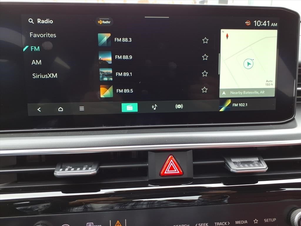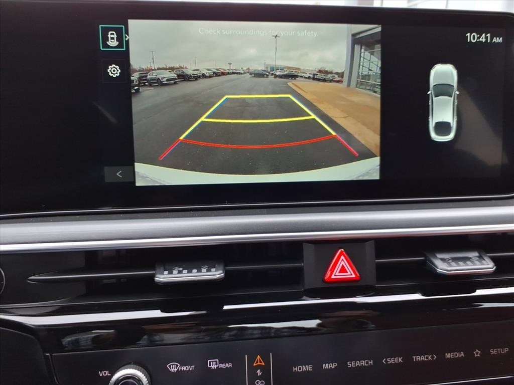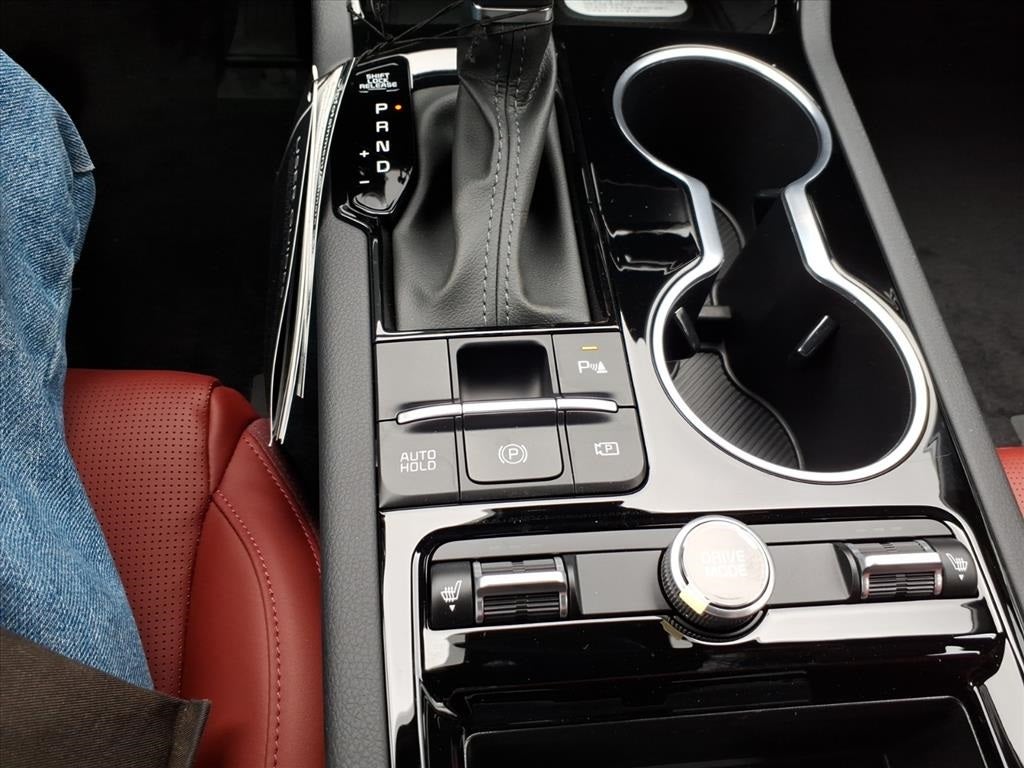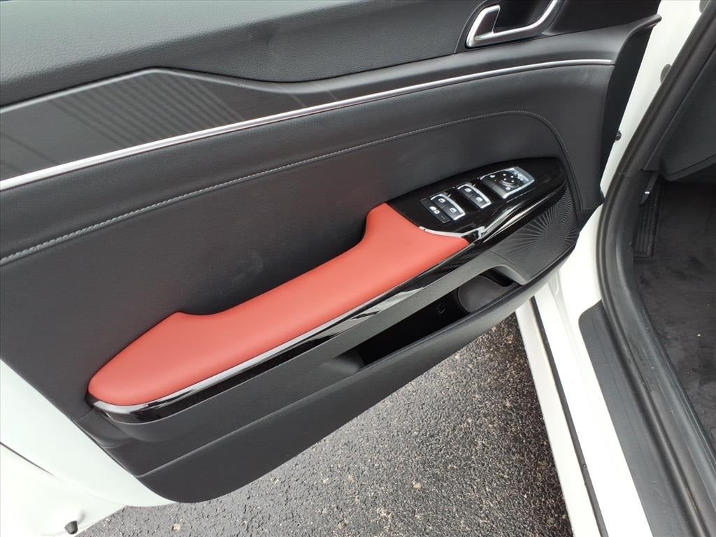 Air Conditioning, Auto High-beam Headlights, Heated door mirrors, Heated Front Bucket Seats, Heated front seats, Heated steering wheel, Navigation System, Power windows, Wheels: 18 x 7.5J Gloss Black Machined Finish Alloy, 4-Wheel Disc Brakes, 6 Speakers, ABS brakes, Alloy wheels, AM/FM radio: SiriusXM, Automatic temperature control, Brake assist, Bumpers: body-color, Delay-off headlights, Driver door bin, Driver vanity mirror, Dual front impact airbags, Dual front side impact airbags, Electronic Stability Control, Emergency communication system: Kia Connect (includes 1 year free trial), Four wheel independent suspension, Front anti-roll bar, Front Bucket Seats, Front Center Armrest, Front dual zone A/C, Front fog lights, Front reading lights, Fully automatic headlights, Illuminated entry, Knee airbag, Leather Shift Knob, Leather steering wheel, Low tire pressure warning, Occupant sensing airbag, Outside temperature display, Overhead airbag, Overhead console, Panic alarm, Passenger door bin, Passenger vanity mirror, Power door mirrors, Power driver seat, Power steering, Radio data system, Radio: AM/FM Audio System, Rear anti-roll bar, Rear seat center armrest, Rear side impact airbag, Rear window defroster, Remote keyless entry, Security system, Speed control, Speed-sensing steering, Split folding rear seat, Sport steering wheel, Steering wheel mounted audio controls, Tachometer, Telescoping steering wheel, Tilt steering wheel, Traction control, Trip computer, Turn signal indicator mirrors, and Variably intermittent wipers.