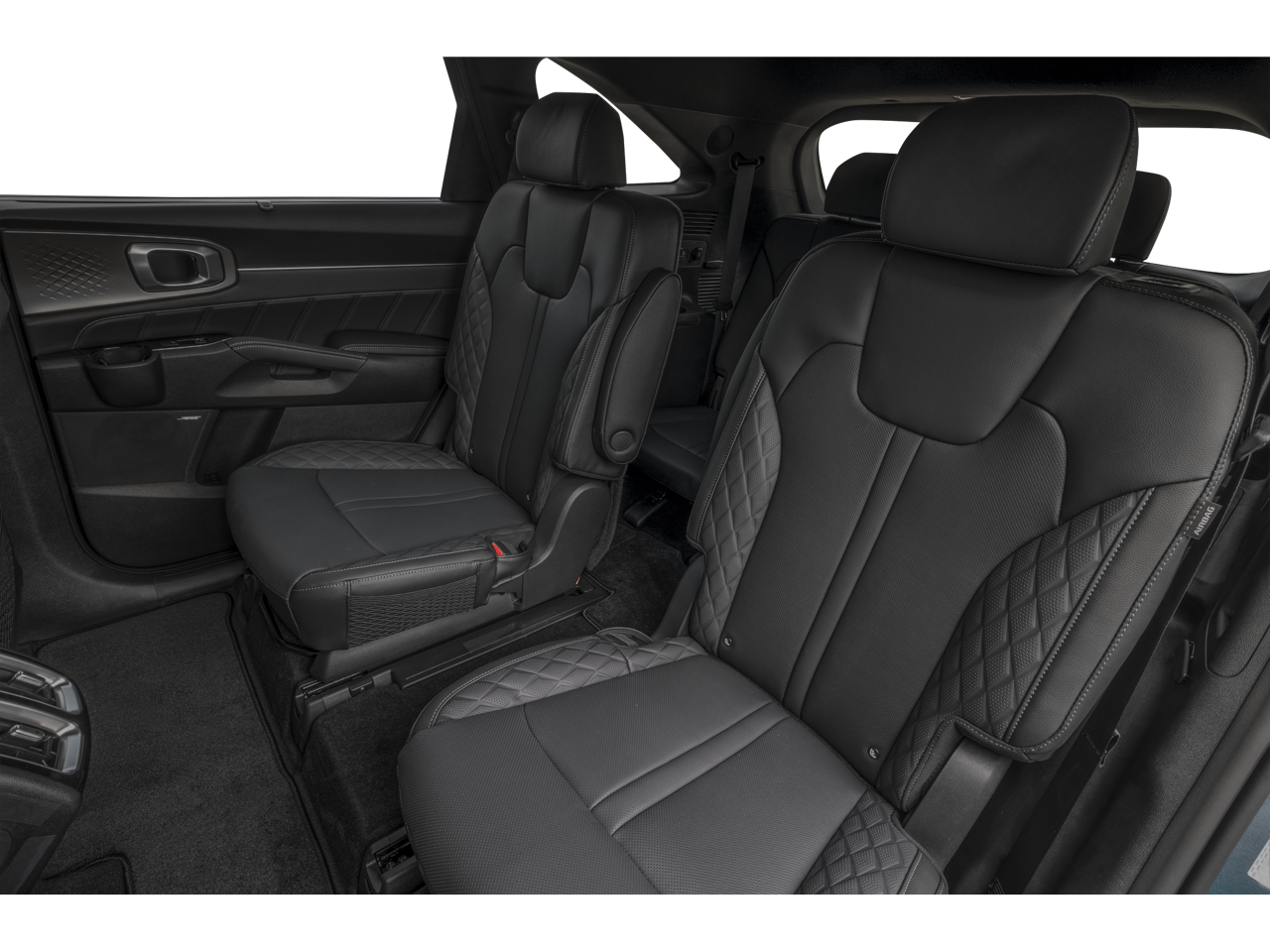 1.6L Turbo GDI 4-Cylinder, 12 Speakers, 3rd row seats: split-bench, 4-Wheel Disc Brakes, ABS brakes, Air Conditioning, Alloy wheels, AM/FM radio: SiriusXM, Apple CarPlay & Android Auto, Auto High-beam Headlights, Auto-dimming Rear-View mirror, Automatic temperature control, Brake assist, Bumpers: body-color, Delay-off headlights, Driver door bin, Driver vanity mirror, Dual front impact airbags, Dual front side impact airbags, Electronic Stability Control, Emergency communication system: 911 Connect, Exterior Parking Camera Rear, Four wheel independent suspension, Front anti-roll bar, Front Bucket Seats, Front Center Armrest, Front dual zone A/C, Front fog lights, Front reading lights, Fully automatic headlights, Garage door transmitter: HomeLink, Heated and Ventilated Front Bucket Seats, Heated door mirrors, Heated front seats, Heated rear seats, Heated steering wheel, Illuminated entry, Knee airbag, Leather steering wheel, Low tire pressure warning, Memory seat, Navigation System, Occupant sensing airbag, Outside temperature display, Overhead airbag, Overhead console, Panic alarm, Passenger door bin, Passenger vanity mirror, Perforated Genuine Leather Seat Trim, Power door mirrors, Power driver seat, Power Liftgate, Power moonroof, Power passenger seat, Power steering, Power windows, Radio data system, Radio: AM/FM/SiriusXM Audio System, Rain sensing wipers, Rear anti-roll bar, Rear reading lights, Rear side impact airbag, Rear window defroster, Rear window wiper, Remote keyless entry, Security system, Speed control, Speed-sensing steering, Split folding rear seat, Spoiler, Steering wheel mounted audio controls, Tachometer, Telescoping steering wheel, Tilt steering wheel, Traction control, Trip computer, Turn signal indicator mirrors, Variably intermittent wipers, Ventilated front seats, and Wheels: 19 x 7.5J Machine-Finished Aero-Alloy.
