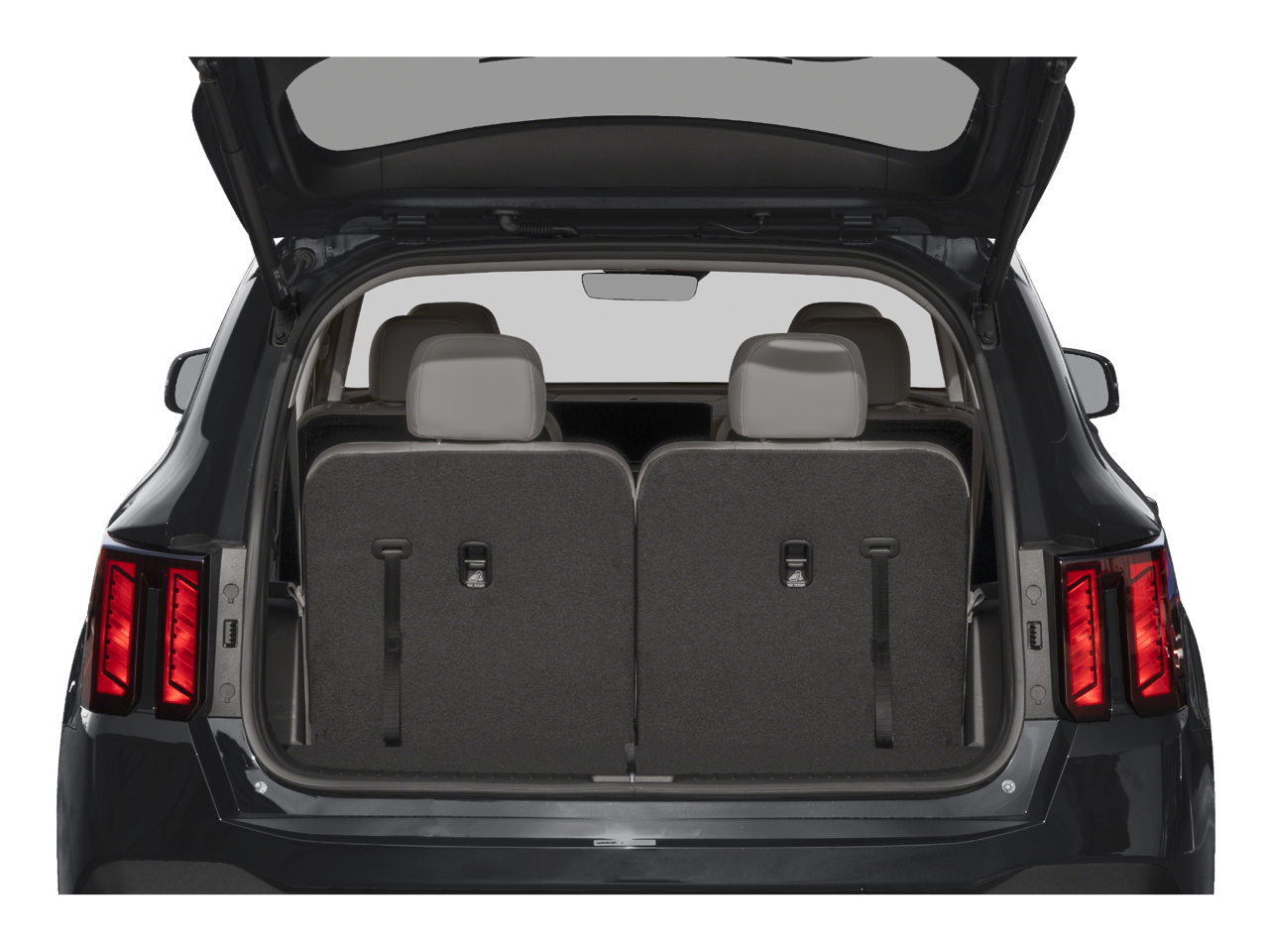 AWD, Apple CarPlay & Android Auto, Front dual zone A/C, Heated Front Bucket Seats, Navigation System, Power Liftgate, Power windows, SynTex Artificial Leather Seat Trim, Wheels: 20 Machine-Finished Gloss Black Alloy, 3rd row seats: split-bench, 4-Wheel Disc Brakes, 6 Speakers, ABS brakes, Air Conditioning, Alloy wheels, AM/FM radio: SiriusXM, Auto High-beam Headlights, Auto-dimming Rear-View mirror, Automatic temperature control, Brake assist, Bumpers: body-color, Delay-off headlights, Driver door bin, Driver vanity mirror, Dual front impact airbags, Dual front side impact airbags, Electronic Stability Control, Emergency communication system: 911 Connect, Exterior Parking Camera Rear, Four wheel independent suspension, Front anti-roll bar, Front Center Armrest, Front fog lights, Front reading lights, Fully automatic headlights, Heated door mirrors, Illuminated entry, Knee airbag, Leather Shift Knob, Leather steering wheel, Low tire pressure warning, Occupant sensing airbag, Outside temperature display, Overhead airbag, Overhead console, Panic alarm, Passenger door bin, Passenger vanity mirror, Power door mirrors, Power driver seat, Power passenger seat, Power steering, Radio data system, Radio: AM/FM Standard Sound System, Rear anti-roll bar, Rear reading lights, Rear seat center armrest, Rear side impact airbag, Rear window defroster, Rear window wiper, Remote keyless entry, Security system, Speed control, Speed-sensing steering, Split folding rear seat, Spoiler, Steering wheel mounted audio controls, Tachometer, Telescoping steering wheel, Tilt steering wheel, Traction control, Trip computer, Turn signal indicator mirrors, and Variably intermittent wipers.