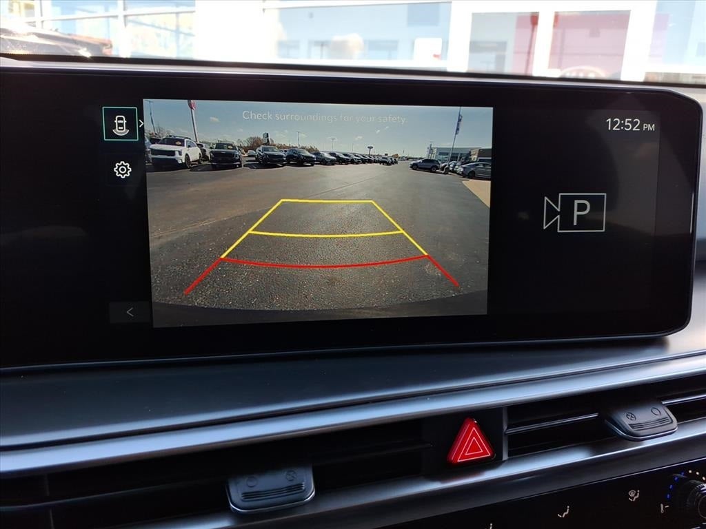 Air Conditioning, Alloy wheels, Apple CarPlay & Android Auto, Cloth Seat Trim, Front Bucket Seats, Heated door mirrors, Leather Shift Knob, Power windows, 3rd row seats: split-bench, 4-Wheel Disc Brakes, 6 Speakers, ABS brakes, AM/FM radio: SiriusXM, Auto High-beam Headlights, Brake assist, Bumpers: body-color, Delay-off headlights, Driver door bin, Driver vanity mirror, Dual front impact airbags, Dual front side impact airbags, Electronic Stability Control, Emergency communication system: 911 Connect, Exterior Parking Camera Rear, Four wheel independent suspension, Front anti-roll bar, Front Center Armrest, Front reading lights, Fully automatic headlights, Illuminated entry, Knee airbag, Leather steering wheel, Low tire pressure warning, Occupant sensing airbag, Outside temperature display, Overhead airbag, Overhead console, Panic alarm, Passenger door bin, Passenger vanity mirror, Power door mirrors, Power steering, Radio data system, Radio: AM/FM Standard Sound System, Rear anti-roll bar, Rear reading lights, Rear seat center armrest, Rear side impact airbag, Rear window defroster, Rear window wiper, Remote keyless entry, Security system, Speed control, Speed-sensing steering, Split folding rear seat, Spoiler, Steering wheel mounted audio controls, Tachometer, Telescoping steering wheel, Tilt steering wheel, Traction control, Trip computer, Turn signal indicator mirrors, and Variably intermittent wipers.