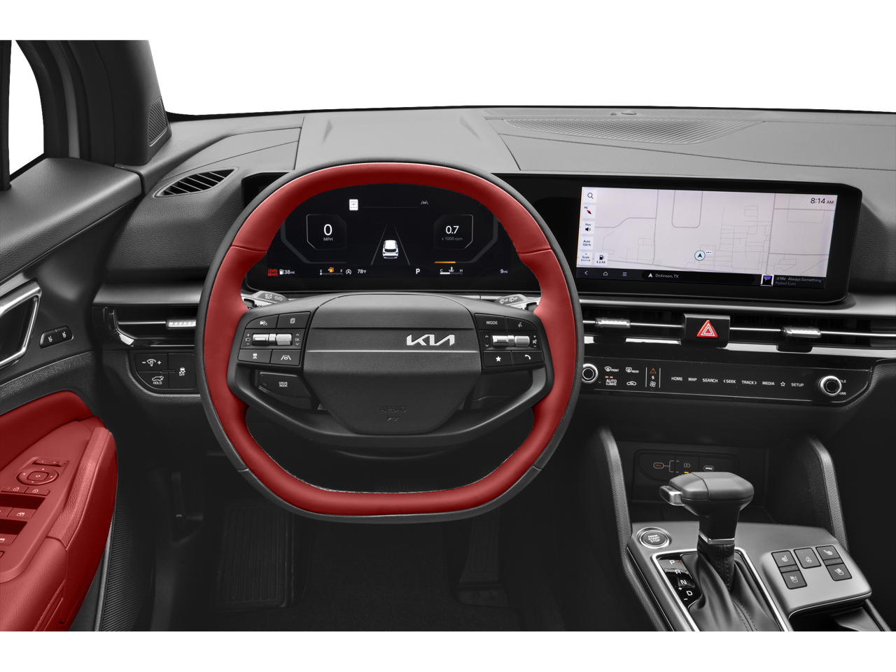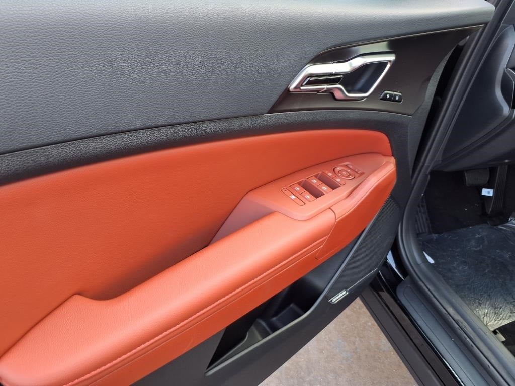 Air Conditioning, Heated steering wheel, Navigation System, Power moonroof, Ventilated front seats, 4-Wheel Disc Brakes, 8 Speakers, ABS brakes, Alloy wheels, AM/FM radio: SiriusXM, Auto High-beam Headlights, Automatic temperature control, Brake assist, Bumpers: body-color, Compass, Delay-off headlights, Driver door bin, Driver vanity mirror, Dual front impact airbags, Dual front side impact airbags, Electronic Stability Control, Emergency communication system: Kia Connect (includes 1 year free trial), Four wheel independent suspension, Front anti-roll bar, Front Center Armrest, Front dual zone A/C, Front fog lights, Front reading lights, Fully automatic headlights, harman/kardon® Speakers, Heated door mirrors, Illuminated entry, Leather Shift Knob, Leather steering wheel, Low tire pressure warning, Memory seat, Occupant sensing airbag, Outside temperature display, Overhead airbag, Overhead console, Panic alarm, Passenger door bin, Passenger vanity mirror, Power door mirrors, Power driver seat, Power Liftgate, Power passenger seat, Power steering, Power windows, Radio: AM/FM/HD Premium Audio System, Rain sensing wipers, Rear anti-roll bar, Rear reading lights, Rear seat center armrest, Rear side impact airbag, Rear window defroster, Rear window wiper, Remote keyless entry, Security system, Speed control, Speed-sensing steering, Split folding rear seat, Spoiler, Steering wheel mounted audio controls, Tachometer, Telescoping steering wheel, Tilt steering wheel, Traction control, Trip computer, Turn signal indicator mirrors, Variably intermittent wipers, and Wheels: 19 x 7.5J Alloy.