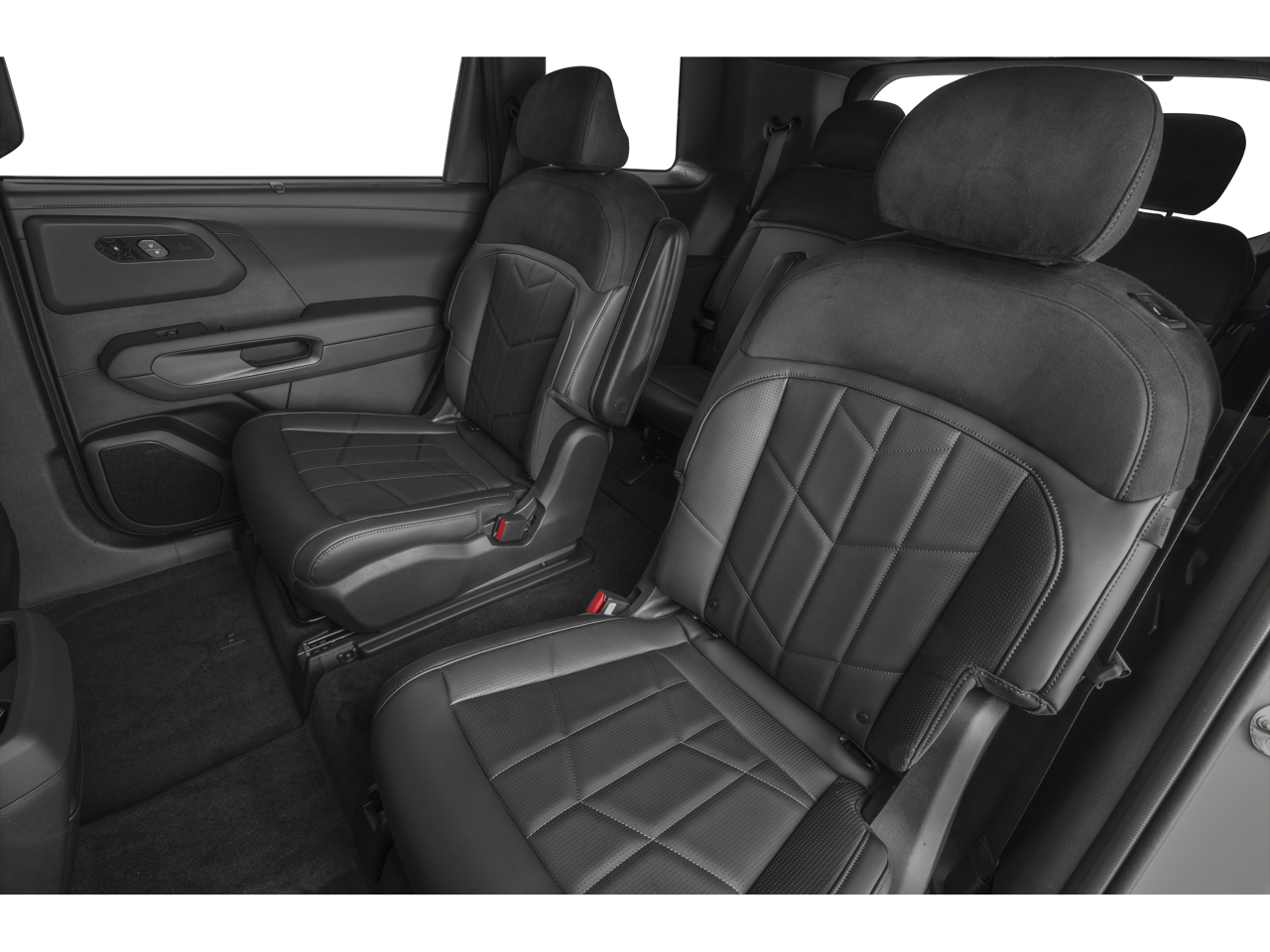 14 Speakers, 3rd row seats: split-bench, 4-Wheel Disc Brakes, ABS brakes, Air Conditioning, Alloy wheels, AM/FM radio: SiriusXM, Apple CarPlay & Android Auto, Audio memory, Auto High-beam Headlights, Auto-dimming door mirrors, Auto-dimming Rear-View mirror, Auto-leveling suspension, Automatic temperature control, Brake assist, Bumpers: body-color, Compass, Delay-off headlights, Driver door bin, Driver vanity mirror, Dual front impact airbags, Dual front side impact airbags, Electronic Stability Control, Emergency communication system: 911 Connect, Exterior Parking Camera Rear, Four wheel independent suspension, Front anti-roll bar, Front Bucket Seats, Front Center Armrest, Front dual zone A/C, Front fog lights, Front reading lights, Fully automatic headlights, Garage door transmitter: HomeLink, Heads-Up Display, Heated and Ventilated Front Bucket Seats, Heated door mirrors, Heated front seats, Heated rear seats, Heated steering wheel, HVAC memory, Illuminated entry, Knee airbag, Low tire pressure warning, Memory seat, Navigation System, Occupant sensing airbag, Outside temperature display, Overhead airbag, Overhead console, Panic alarm, Passenger door bin, Passenger vanity mirror, Power door mirrors, Power driver seat, Power Liftgate, Power moonroof, Power passenger seat, Power steering, Power windows, Radio data system, Radio: AM/FM Audio System, Rain sensing wipers, Rear air conditioning, Rear anti-roll bar, Rear reading lights, Rear side impact airbag, Rear window defroster, Rear window wiper, Reclining 3rd row seat, Remote keyless entry, Security system, Speed control, Speed-sensing steering, Split folding rear seat, Spoiler, Steering wheel memory, Steering wheel mounted audio controls, SynTex/SynTex Suede Seat Trim, Tachometer, Telescoping steering wheel, Tilt steering wheel, Traction control, Trip computer, Turn signal indicator mirrors, Variably intermittent wipers, Ventilated front seats, Ventilated rear seats, and Wheels: 18 x 7.5 X-Pro Exclusive Type C Alloy.