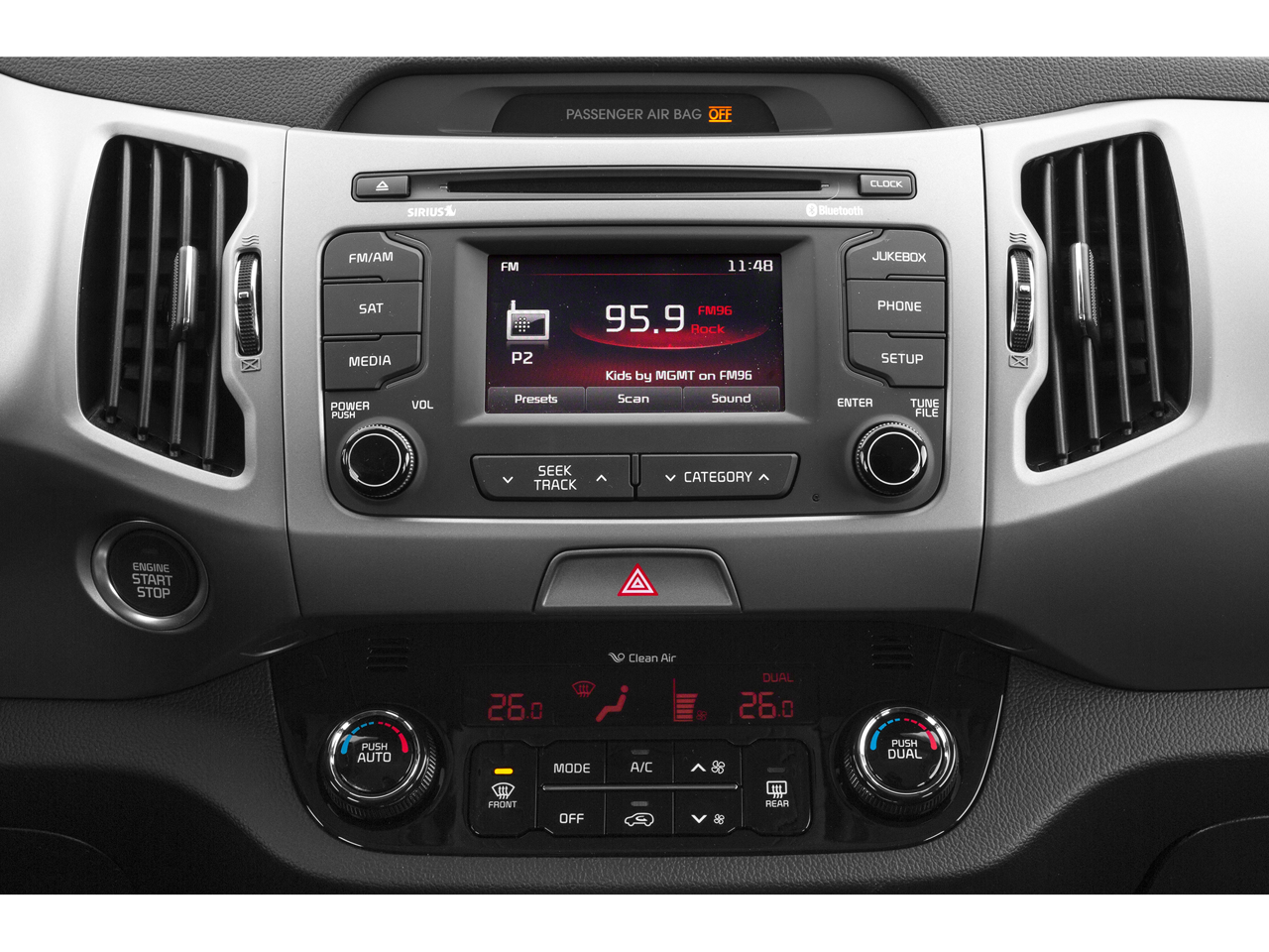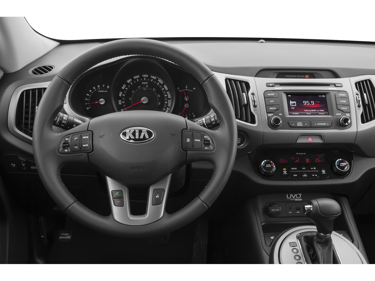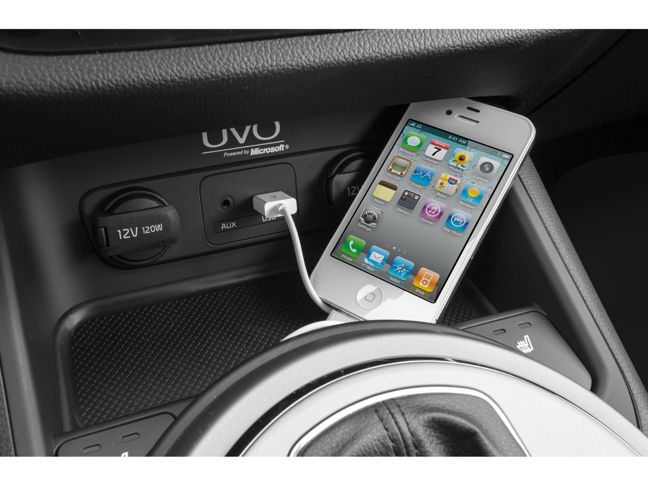 - Radio: AM/FM/CD w/UVO Infotainment -inc: Sirius satellite radio, USB and auxiliary input jacks, Bluetooth® (phone and streaming audio) Compatible with Apple USB cable