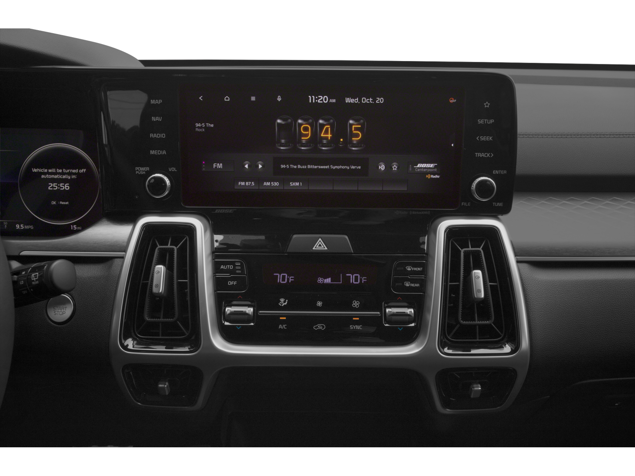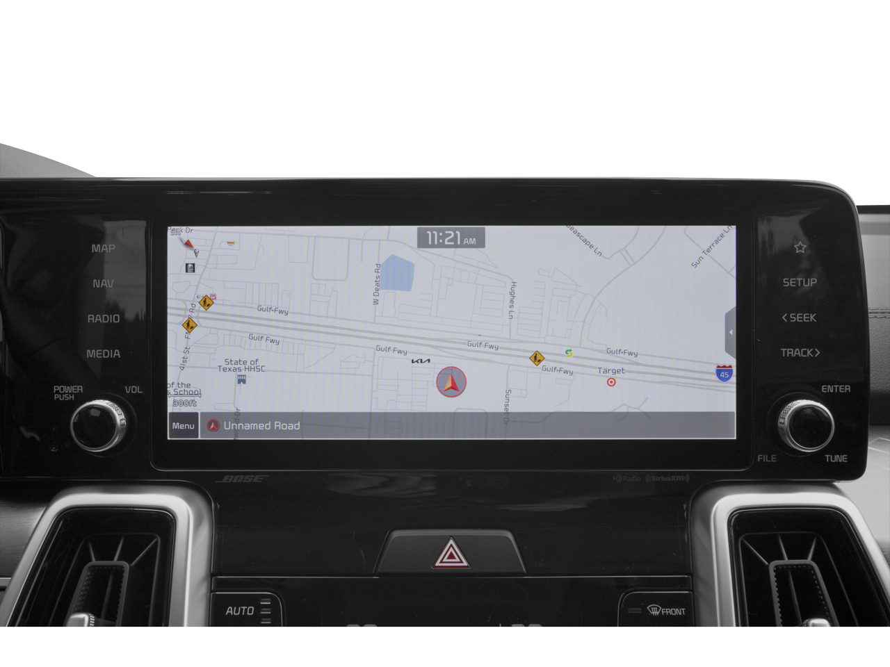 3rd row seats: split-bench, Apple CarPlay & Android Auto, Front dual zone A/C, Fully automatic headlights, Heated & Ventilated Front Bucket Seats, Memory seat, Navigation System, Perforated Genuine Leather Seat Trim, Power Liftgate, Power moonroof, Rear air conditioning, Wheels: 8.5J x 20 Gloss Black Alloy, 12 Speakers, 3.316 Axle Ratio, 4-Wheel Disc Brakes, ABS brakes, Air Conditioning, Alloy wheels, AM/FM radio: SiriusXM, Auto High-beam Headlights, Auto-dimming Rear-View mirror, Automatic temperature control, Brake assist, Bumpers: body-color, Carpeted Floor Mats, Delay-off headlights, Driver door bin, Driver vanity mirror, Dual front impact airbags, Dual front side impact airbags, Electronic Stability Control, Emergency communication system: UVO Link, Folding Cargo Tray, Four wheel independent suspension, Front anti-roll bar, Front Bucket Seats, Front Center Armrest, Front fog lights, Front reading lights, Heated door mirrors, Heated front seats, Heated rear seats, Heated steering wheel, Illuminated entry, Knee airbag, Leather steering wheel, Low tire pressure warning, Occupant sensing airbag, Outside temperature display, Overhead airbag, Overhead console, Panic alarm, Passenger door bin, Passenger vanity mirror, Power door mirrors, Power driver seat, Power passenger seat, Power steering, Power windows, Radio data system, Radio: AM/FM Bose Premium Audio System, Rear anti-roll bar, Rear reading lights, Rear window defroster, Rear window wiper, Remote keyless entry, Roof rack: rails only, Security system, Smart Key w/ Push Button and Remote Start, Speed control, Speed-sensing steering, Split folding rear seat, Spoiler, Steering wheel mounted audio controls, Tachometer, Telescoping steering wheel, Tilt steering wheel, Traction control, Trip computer, Turn signal indicator mirrors, Variably intermittent wipers, and Ventilated front seats.