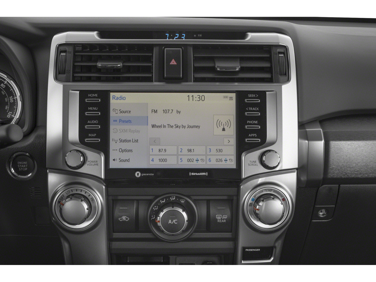 TRD Sport Package (Black Roof Rails, Shift Knob, TRD Sport Badge, and TRD Sport Carpet Floor Mats), 4WD, Black/Graphite w/Leather Seat Trim, Air Conditioning, Apple CarPlay/Android Auto, Exterior Parking Camera Rear, Front Bucket Seats, Power driver seat, SofTex Seat Trim, Wheels: 20 Unique Dual 6-Spoke Alloy, 3.727 Axle Ratio, 4-Wheel Disc Brakes, 8 Speakers, ABS brakes, Alloy wheels, AM/FM radio: SiriusXM, Anti-whiplash front head restraints, Auto High-beam Headlights, Brake assist, Bumpers: body-color, Driver door bin, Driver vanity mirror, Dual front impact airbags, Dual front side impact airbags, Electronic Stability Control, Emergency communication system: Safety Connect (1-year trial), Front anti-roll bar, Front Center Armrest, Front fog lights, Front reading lights, Front wheel independent suspension, Heated door mirrors, Illuminated entry, Knee airbag, Leather Shift Knob, Leather steering wheel, Low tire pressure warning, Occupant sensing airbag, Outside temperature display, Overhead airbag, Overhead console, Panic alarm, Passenger door bin, Passenger vanity mirror, Power door mirrors, Power steering, Power windows, Radio: Audio, Rear anti-roll bar, Rear seat center armrest, Rear window defroster, Rear window wiper, Remote keyless entry, Security system, Speed control, Speed-sensing steering, Split folding rear seat, Spoiler, Steering wheel mounted audio controls, Tachometer, Telescoping steering wheel, Tilt steering wheel, Traction control, Trip computer, and Variably intermittent wipers.